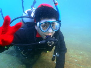 この日が初ダイビングだったという講習生。