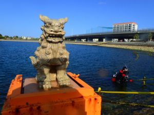 沖縄の守り神シーサーが見守る海での