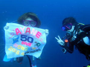 当店でOWを取得されたリピータ様ですが、この日50本目の記念ダイブ(^^)