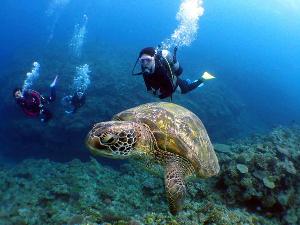 でっかいガメラのようなカメとランデブ~(^^)