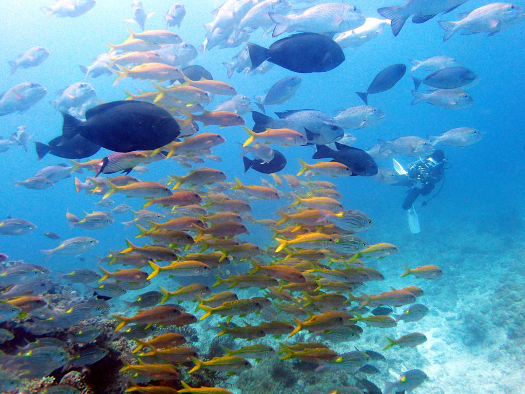 ラストダイブでは魚影が濃く、大型のサメも泳いでました(^^)