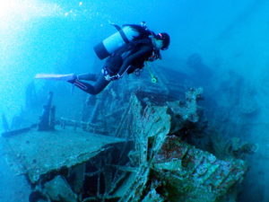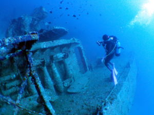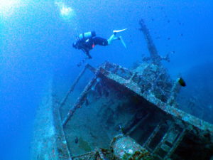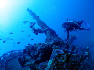 古宇利島沖の深ーい場所に沈んでいる「沈船エモンズ」へ