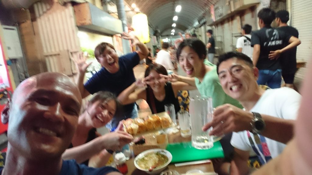 今日の打ち上げは2日前のゲスト達と、沖縄のディープ飲み屋街の栄街へ。