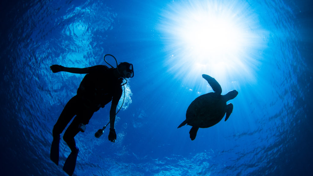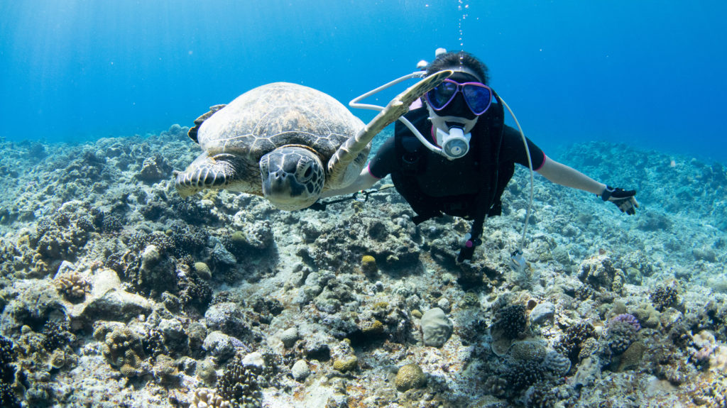 休憩中はスキンダイビング。