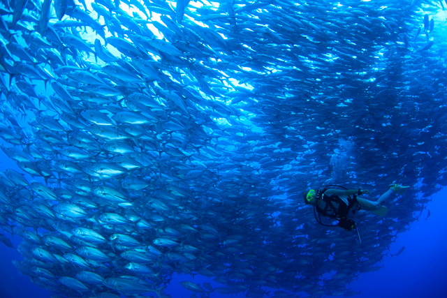 バリカサグダイビングの良いところはなんといっても魚影の濃さ。最近ジンベエザメも出ているよう