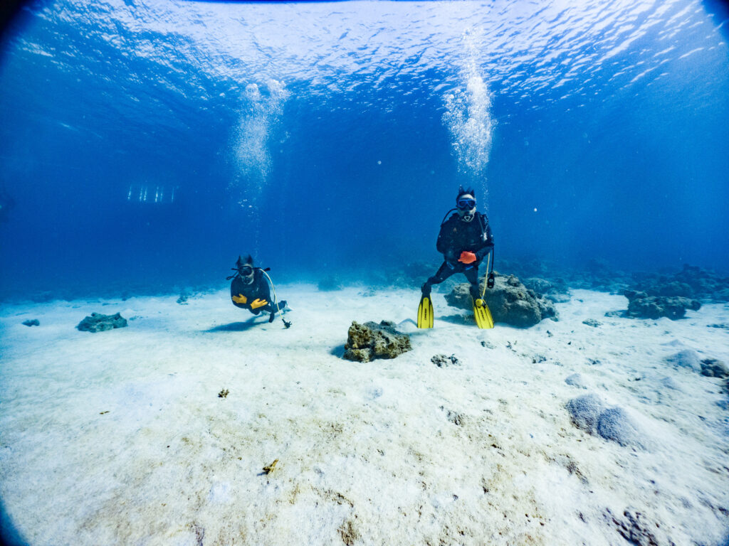 中性浮力の練習をしつつ、海底ポスト前で記念撮影